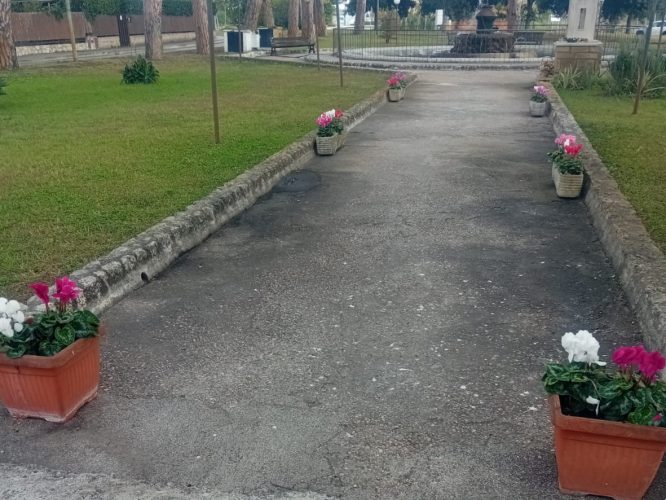 Fontana, donati ciclamini da Loretta del “Chiosco della Frutta”