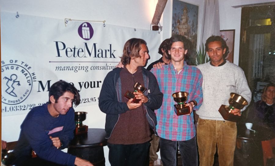 L’aiutante Jimmi viene presto sostituito con Manuel Signore che mi dà una mano nelle pulizie e rimane a disposizione, quando sono in mare a fare lezione o per la mia pratica giornaliera di windsurf e/o surf, per fornire info sulle attività del club. È un mio allievo Manuel, sta imparando il surf che preferisce al windsurf; è un ragazzo di 17 anni cresciuto al Villaggio dei Pescatori e conosco sia il padre che la madre fin da bambino. Il circolo gode di una discreta presenza di soci che, grazie alla nuova attività di surfing, è aumentata ulteriormente fedeli come sono nel digitare il numero della segreteria telefonica 6680958 che informa, ogni volta che le condizioni meteo cambiano, sull’evoluzione del vento e delle onde e del tempo in generale. Con Fabio D’Anna e Massimiliano Germini stiamo facendo progetti affiliandoci alla federazione italiana nata da pochi anni, rinominata da Alessandro Dini e chiamata ‘Fisurf’.