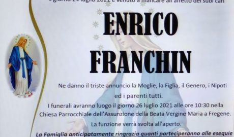 Il 24 luglio Enrico Franchin ci ha lasciato. Condoglianze ai parenti e alla figlia Stefania dalla nostra redazione. Il funeraleLEGGI TUTTO