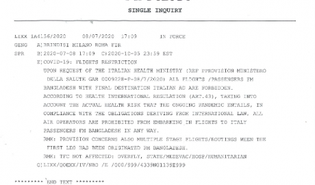 Enac vieta ai vettori stranieri di imbarcare persone che provengono dal Bangladesh e dirette in Italia. Lo fa sapere ilLEGGI TUTTO