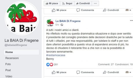 Con un post su istagram e su facebook Benny Gili ha deciso di chiudere temporaneamente stabilimento e ristorante assicurando “conLEGGI TUTTO