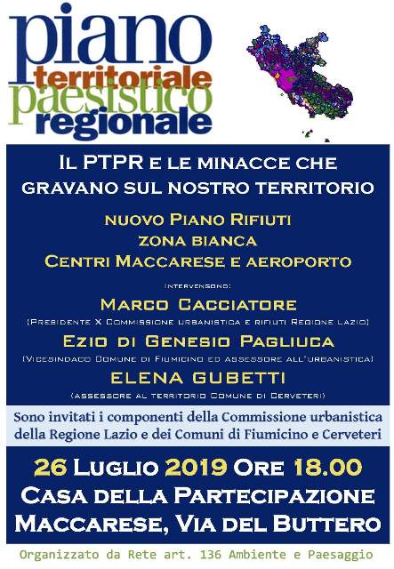 Il PTPR e le minacce sul territorio, incontro alle 18 a Maccarese