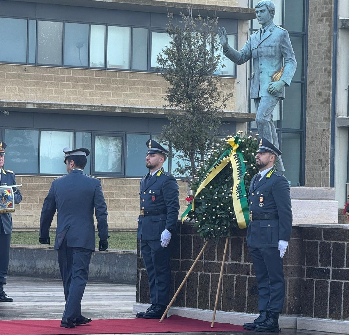 La prima cerimonia si è tenuta presso la Caserma della Guardia di Finanza dell’Aeroporto di Fiumicino, dove è stato reso omaggio al finanziere Antonio Zara. Alla commemorazione ha preso parte il Vice Sindaco del Comune di Fiumicino, Giovanna Onorati, insieme alle autorità religiose, civili e militari, in un momento di raccoglimento dedicato a chi ha sacrificato la propria vita al servizio dello Stato.