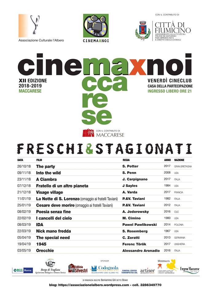 Torna Cinema X Noi, l’appuntamento cinematografico curato dall’associazione culturale L’Albero di Maccarese, giunto alla XII edizione. La rassegna di quest’anno, dal titolo “Freschi e stagionati”, si aprirà con il film di Sally Potter “The Party” il 26 ottobre alle ore 21.00.