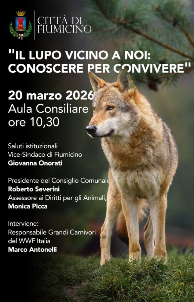 Il prossimo 20 marzo alle ore 10.30, presso l’Aula consiliare del Comune di Fiumicino, l’Assessorato ai Diritti per gli Animali ha organizzato un incontro dedicato alle scuole dal titolo “Il lupo vicino a noi: conoscere per convivere”, con l’obiettivo di sensibilizzare le nuove generazioni alla conoscenza e al rispetto della fauna selvatica.
