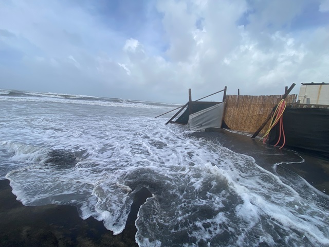 Le previsioni davano tre metri di onda con alta marea. Giornata molto complicata quella di oggi per gli stabilimenti a rischio. In particolare quelli tra Fregene sud, dalla fine dalla soffolta altezza Ondina, fino alla parte centrale della costa.