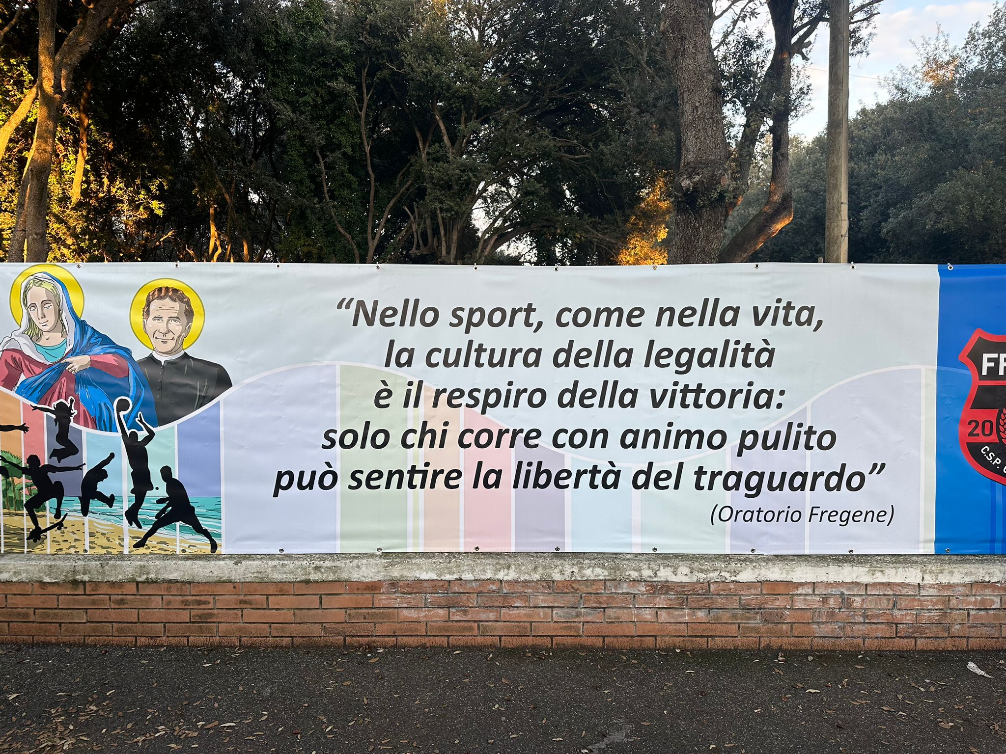 Una ventata di aria nuova accoglierà da oggi tutte le persone che frequentano l’oratorio e che transitano su via Porto Conte. Ben visibile a tutti campeggia la frase scelta e creata dai ragazzi: “Nello sport, come nella vita, la cultura della legalità è il respiro della vittoria: solo chi corre con animo pulito può sentire la libertà del traguardo”.