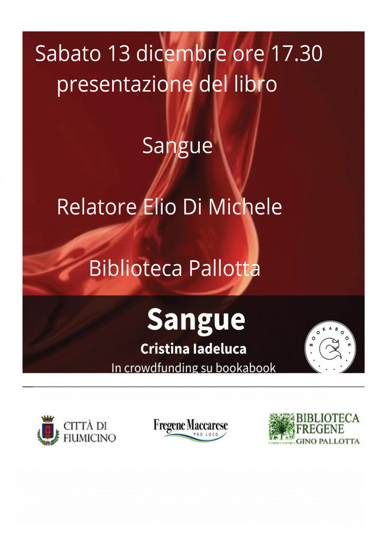 Sabato 13 dicembre alle ore 17.30 Elio Di Michele presenterà il libro di Cristina Iadeluca “Sangue”.
