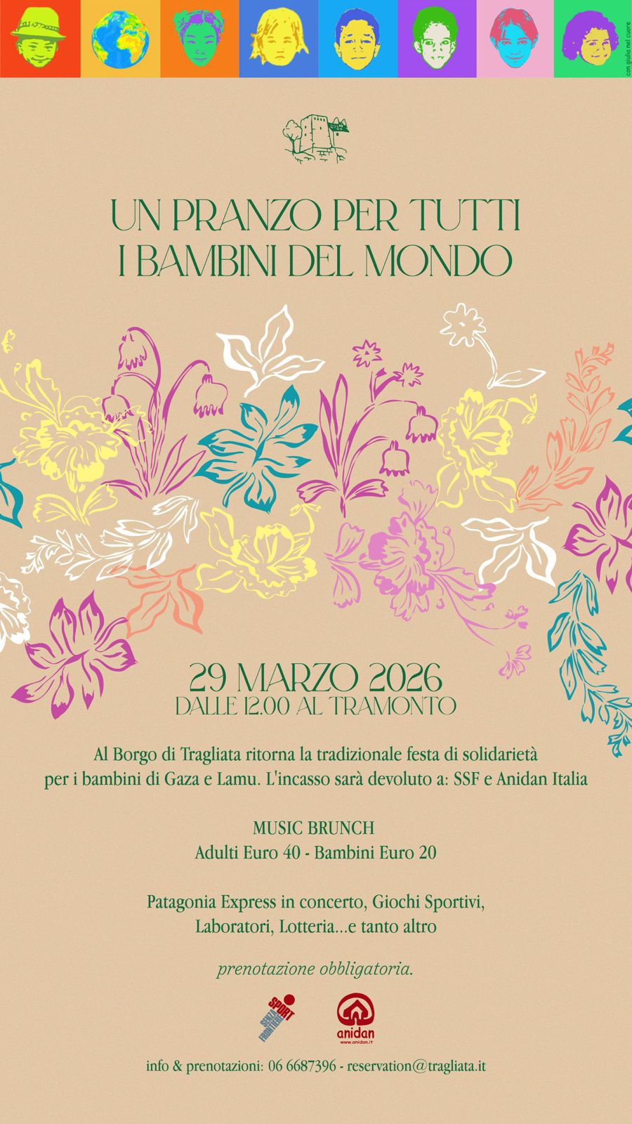 Domenica 29 Marzo torna, per la prima volta in primavera, “Un Pranzo per Tutti i Bambini del Mondo” al Borgo di Tragliata.